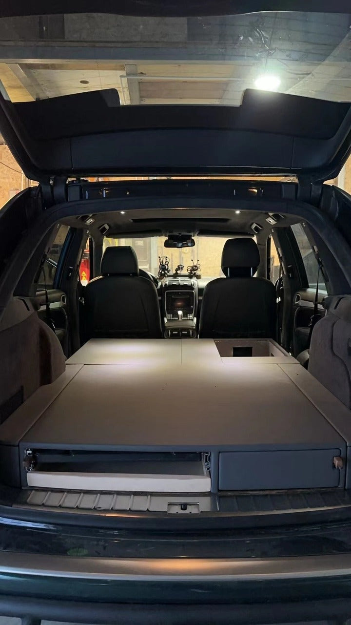 Engineered for optimal organization and versatility, this bespoke flat platform drawer storage system is designed to cater to your vehicle's specific needs. Whether prioritizing storage, sleeping, or both, this system offers a refined solution for your Porsche Cayenne 955/957.