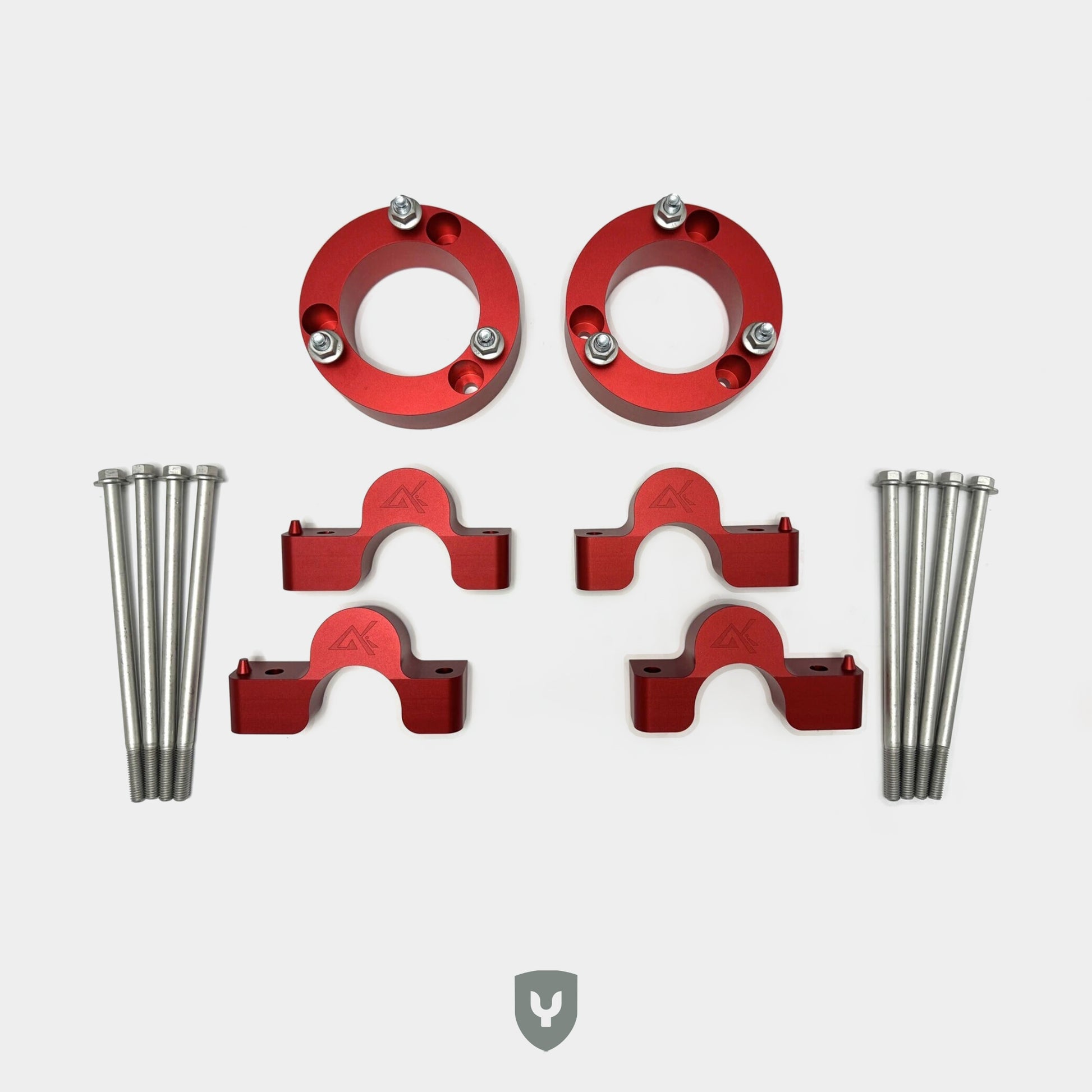 - Top strut mount spacers for front and rear, ensuring a reliable lift.