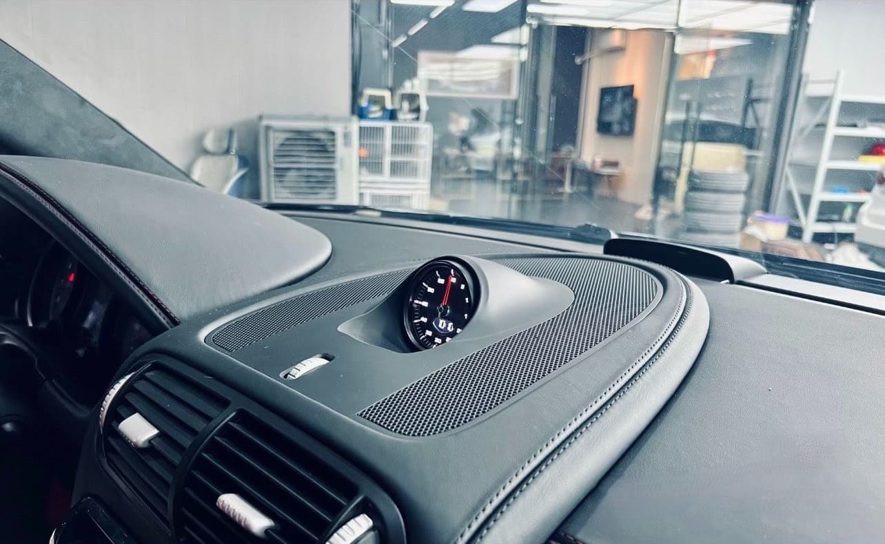 Enhance your Porsche Cayenne's interior with the sophisticated Sports Chrono Clock. This wired and powered clock integrates seamlessly into your dashboard, offering both style and functionality. Available in a range of custom face colors, it utilizes OEM factory hardware for a perfect fit.